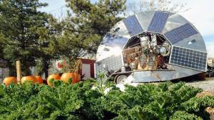 The solar saucer helps power the Green Team Farm project. Photo: James Loomis